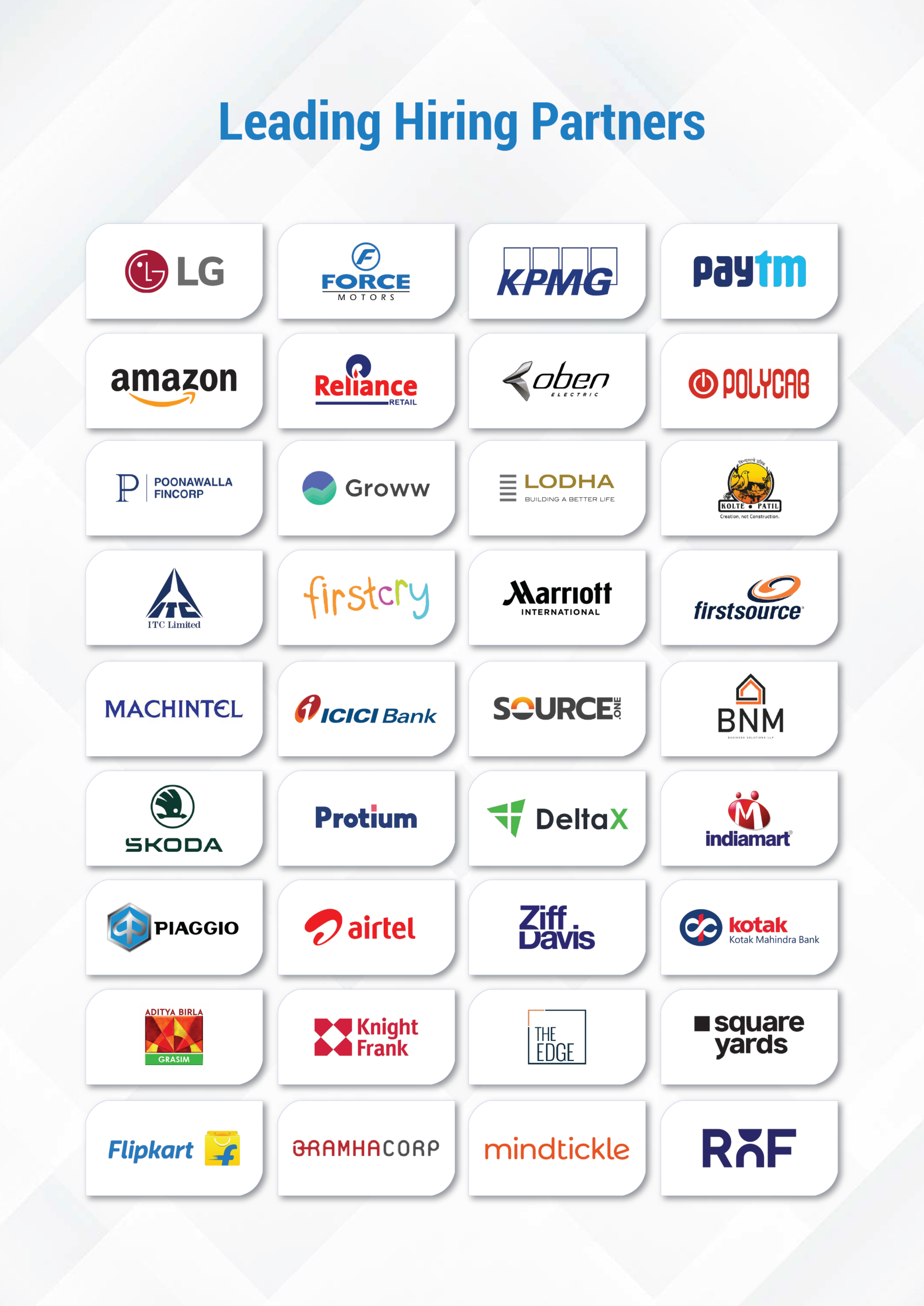 50+ top companies like Deloitte, BNY, Bajaj Allianz, Oxane Partners, and Whirlpool