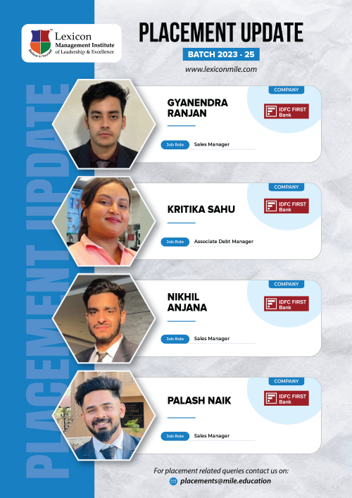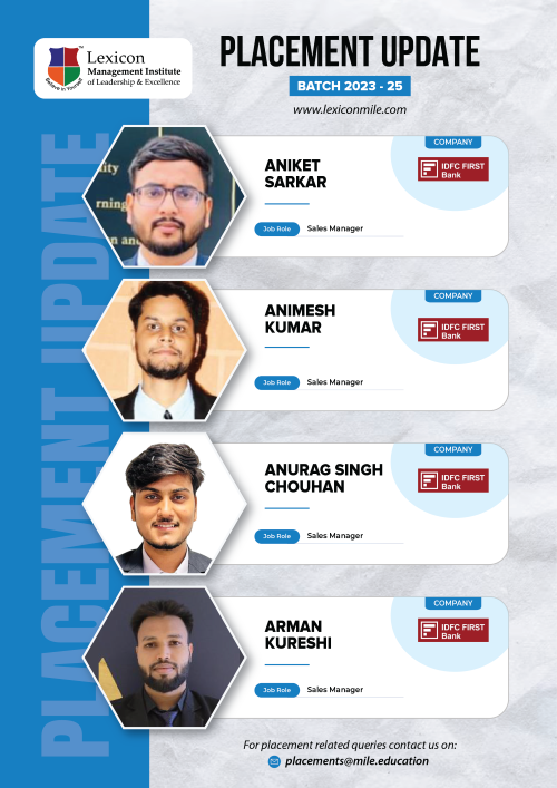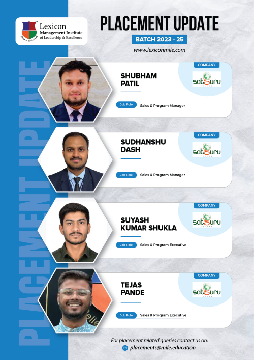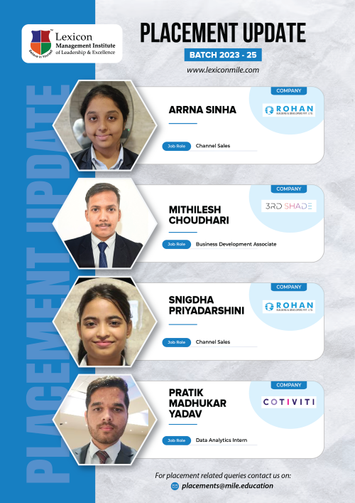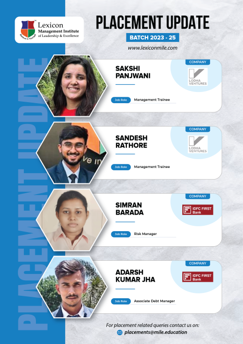 Lexicon Mile continues to achieve remarkable success in the ongoing placements for its PGDM Class of 2023-25. With the highest package reaching an impressive ₹26.6 LPA, Lexicon Mile solidifies its position as one of India’s leading business schools, recognized by NIRF 2025.
